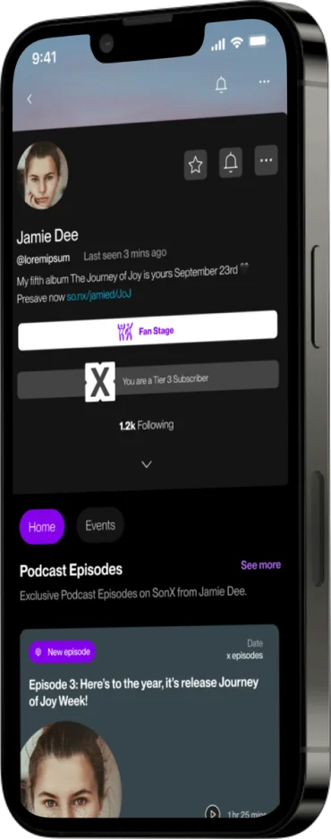 SonX is a place for the superfans, communities of like-minded people and the artists themselves. It’s a place to be hyper-engaged and present – benefiting everyone involved. Discuss, debate, make friends, all while having artists join in on the conversation.