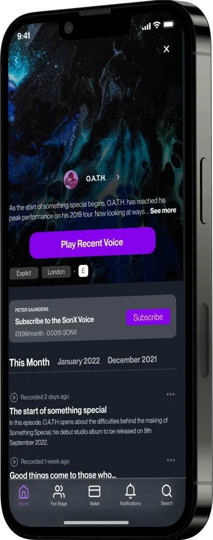 Fans and artists connect on the thing they love the most, music. An artist's SonX community is a place to explore creative direction. Musicians can share music and videos with their close circle without the pressure to put them out publically.